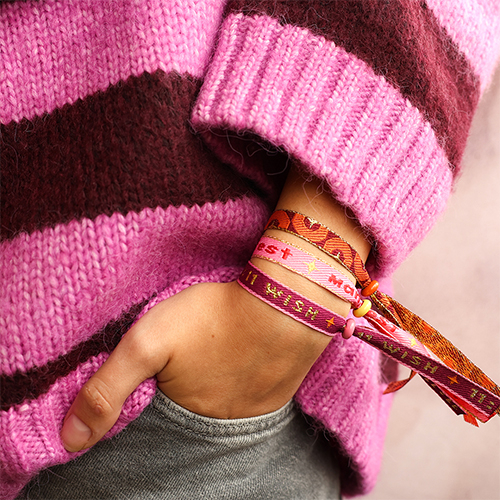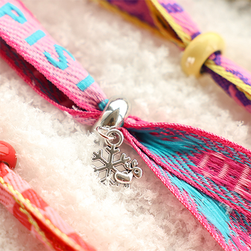 Onze nieuwe collectie lint met tekst, ontworpen door ons eigen team, is verkrijgbaar in vrolijke kleuren zoals roze, paars en blauw, met hippe teksten als "Wish", "Off piste" en "Après ski". Perfect voor het maken van armbandjes met een smart bead stopper, vrolijke sleutelhangers, het pimpen van je skipas, of het feestelijk inpakken van cadeautjes. Voeg een uniek en persoonlijk tintje toe aan je creaties deze feestdagen!