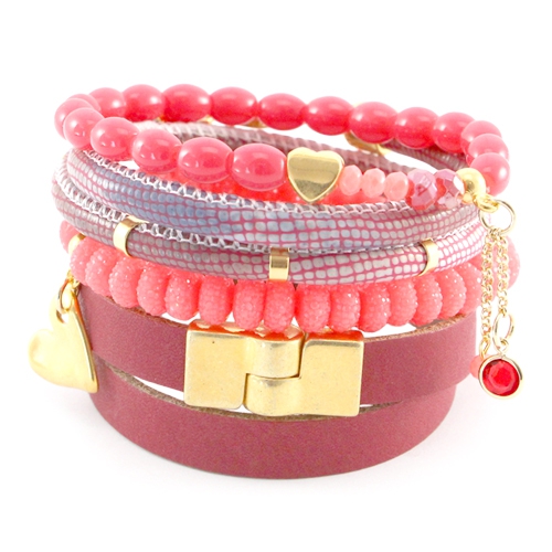 In onze webshop vindt u diverse rode kralen, onderdelen en rijgmaterialen. Er zijn diverse rood tinten, die prachtig met elkaar gecombineerd kunnen worden. In dit inspiratie setje ziet u hier een aantal voorbeelden van. Er zijn diverse armbanden gemaakt van verschillende soorten kralen. Zo zijn er bijvoorbeeld armbanden gemaakt met facetkralen, natuursteen kralen en sparkling beads. In dit geval is alles gecombineerd met gouden accenten, zoals gouden DQ metalen kralen, schuivers en bedels. Ook de verschillende leren armbanden passen perfect bij dit setje! Ook zijn er verschillende rode LC Rivoli puntstenen 1122 – 12 mm gecombineerd met de LC armband. Er zijn genoeg mogelijkheden voor een red sunshine setje. Vergeet ook vooral onze diverse rode Polaris cabochons en facethangers niet!
