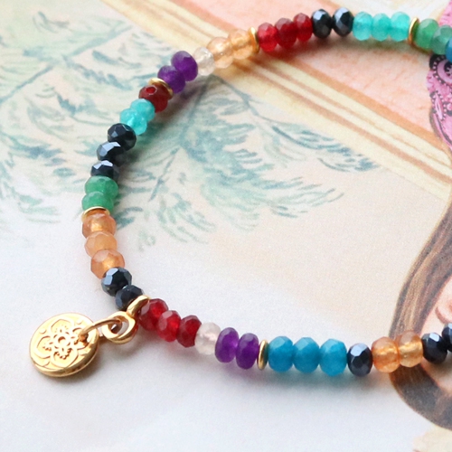 De maat van deze armbandjes zorgt voor de subtiele look, de kleuren van het setje maken het wat meer uitgesproken. Dat vinden wij zo superleuk aan deze set. Kleine armbandjes van facet geslepen natuursteen kralen in disc vorm rijg je op metaaldraad en eindig je met een karabijnslot. Ga voor meerdere kleuren kralen in een armband, en combineer die armband met armbandjes gemaakt van een kleur facet geslepen natuursteen kralen in disc vorm. Eventueel kan je deze nog afmaken met wat DQ metalen details.