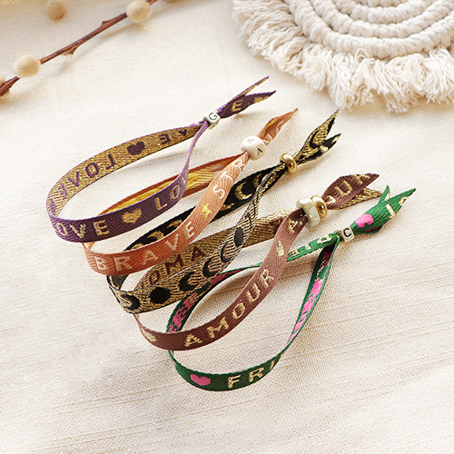 Lint met tekst "amour" Brown-gold