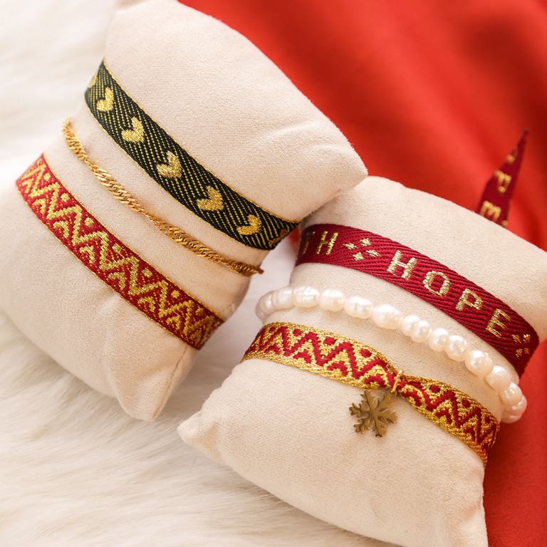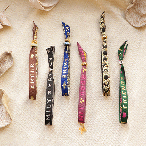 Begin met het op maat knippen van het lint met een goede schaar of tang, zoals de Beadsmith knoop tang. Kies vervolgens diverse kralen en/of schuivers om de armbanden te sluiten zoals bijvoorbeeld een smart bead stopper. Als je een choker maakt, is het handig om lintklemmen te gebruiken om het lint netjes af te werken. Combineer de armbanden met armbanden van Miyuki rocailles en presenteer deze op een sieraden kaartje en verpak de set in een velvet sieraad zakje.