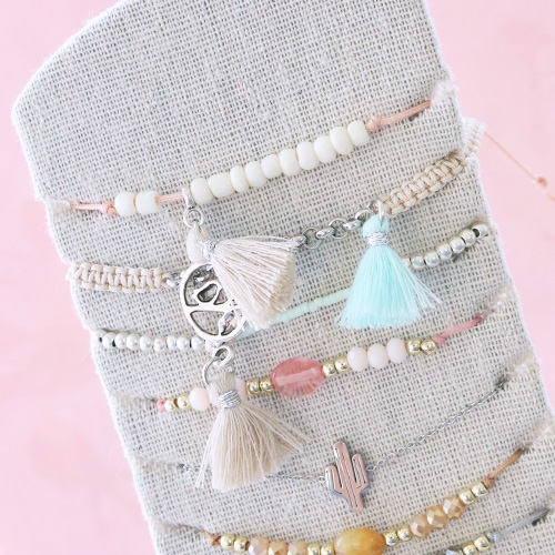 Kleurrijke statement oorbellen zie je telkens weer opnieuw verschijnen op de catwalk en in de magazines. En met wat maak je nou betere statement oorbellen dan onze kwastjes in combinatie met de hangers van DQ metaal met ogen? Voor deze statement oorbellen gebruik je kwastjes in lichte en zachte kleuren, dat staat weer goed bij het zilveren Designer Quality metaal. Bij deze té leuke statement oorbellen maakte we ook nog een paar armbandjes en kettingen met dezelfde kleuren er in verwerkt. Zo combineerde we de kralen met jasseron van stainless steel en rocailles in dezelfde zachte tinten.