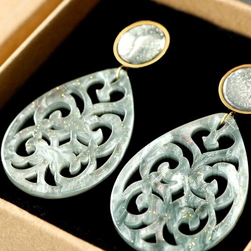 Resin hangers druppel barok 38x27mm Ash grey-green