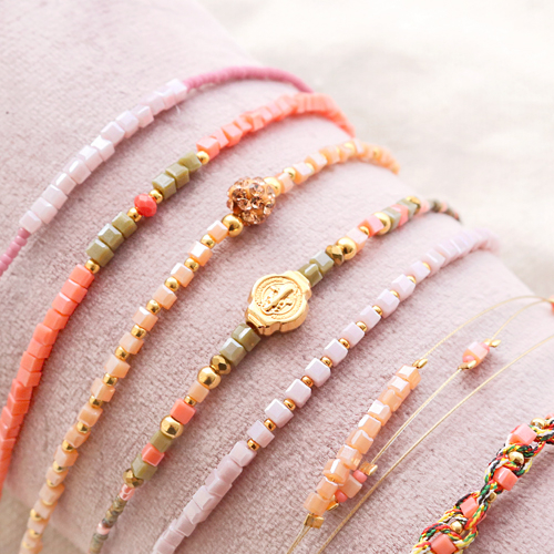 Deze sieraden kun je dragen bij iedere outfit! De sieraden zijn namelijk erg fijn en minimalistisch, maar toch kleurrijk. We combineerden de nieuwe facet kralen cubes met verschillende sieraadonderdelen. Zoals de schattigste DQ metalen kralen, kleine facet kralen en Miyuki rocailles! Als rijgmateriaal gebruikten we macramé draad, Beadalon nymo wire en metaaldraad. Daarbij gebruikten we enkele onderdelen om de sieraden af te werken, zoals knijpkralen, karabijnsloten en macramé sloten!