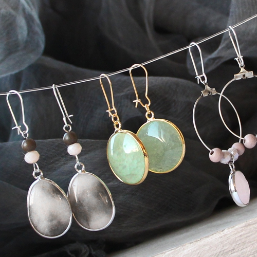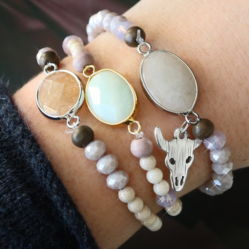 Ga voor een eigenzinnige party look en gebruik onze prachtige half edelstenen hangers als stijlvolle blikvangers. Deze leuke sieraden hebben wij gemaakt door zachte kleuren te gebruiken en mooie materialen te combineren. Gebruik facetkraaltjes en houten kralen om deze look te creëren. Voor de armbandjes kunt u ook glasparels en jade natuursteen kralen gebruiken. Combineer aardse tinten zoals grijs, bruin en groen om de natuurlijke uitstraling te benadrukken. Ook voor oorbellen zijn onze half edelstenen hangers uitermate goed geschikt. Gebruik hiervoor onze ondederlen van DQ metaal. Zo behaalt u het mooiste resultaat. Voor de afwerking gebruik je leuke facet kraaltjes en onze trendy bedels van DQ metaal!