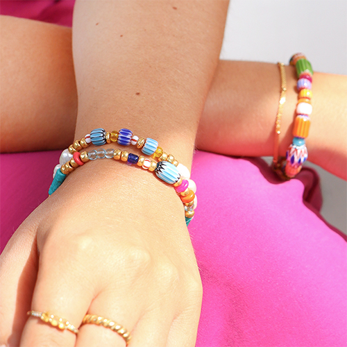 Deze kleurrijke millefiori kralen met streepjes zijn nieuw in de collectie en perfect om te verwerken in trendy boho armbanden. Combineer de millefiori kralen met natuursteen kralen, Miyuki kralen en glaskralen rocailles en laat je inspiratie de vrije loop!