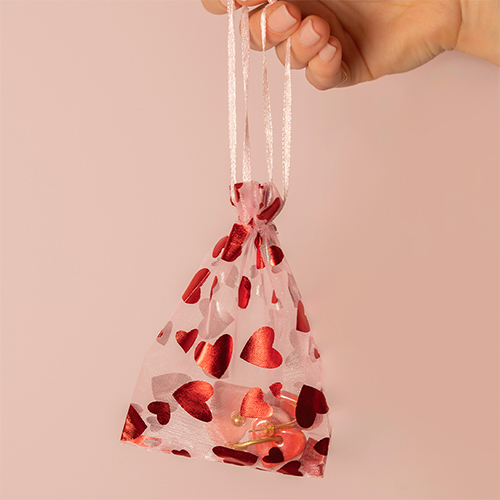 Sieraad zakje organza 7x9cm hart White-red