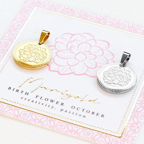 Roestvrij stalen (RVS) Stainless steel bedels Mix & Match 15mm Birth flower January-Carnation Goud