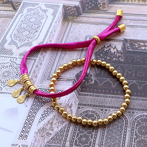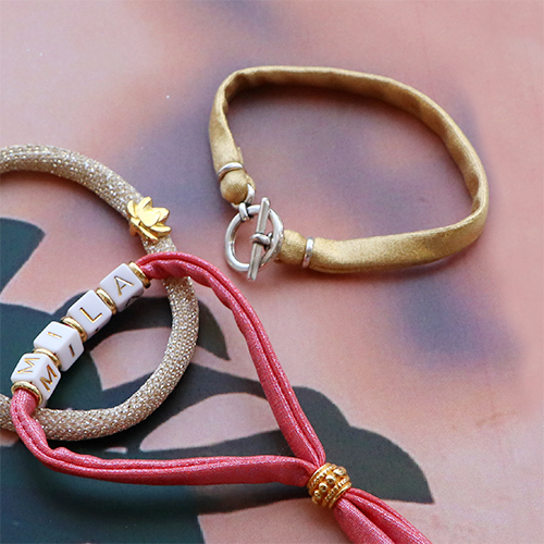 Met dit mooie elastische lint in trendy metallic kleuren maak je heel eenvoudig de mooiste armbanden. Knip het lint op de gewenste lengte en kies een manier om de armband te sluiten. Dit kan bijvoorbeeld met een DQ metalen ring of kraal. Versier vervolgens de armbanden met schuivers of bedels en werk het lint netjes af met eindkappen. Draag de armbanden samen met een armband van jasseron of DQ metalen kralen.