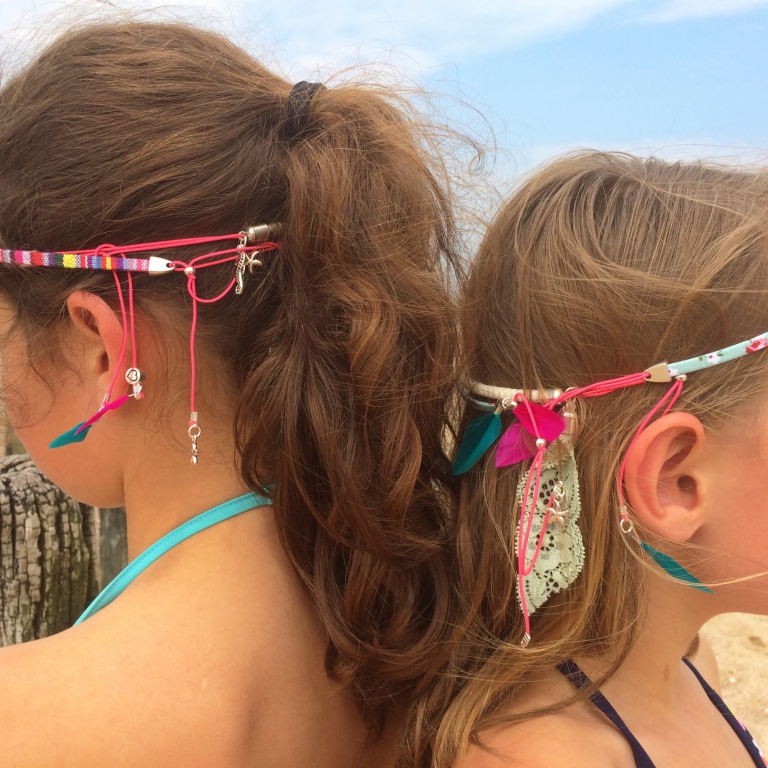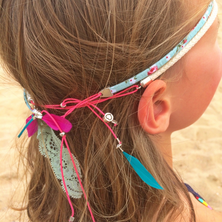 Trendy beach haarbandjes met veertjes en bedels