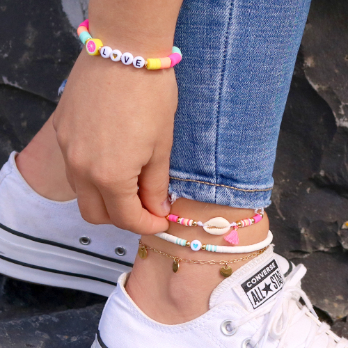 Sieraden met kleurrijke kralen zijn een musthave voor deze lente en zomer! Vandaar dat we trendy enkelbandjes en kettingen hebben gemaakt met de Katsuki disc kralen en macramé draad. Maak een keuze uit de verschillende kleuren Katsuki kralen en combineer ze samen met een kauri schelpje, DQ metalen kralen en een kwastje. De afwisseling van de materialen en de verschillende kleuren geeft het sieraad een speelse look. Smiley kralen zijn tevens ook een grote trend dit jaar en perfect voor maken van enkelbandjes met een vrolijke uitstraling. Voor elegante en schattige Katsuki kettingen en enkelbandjes kun je de kralen combineren met zoetwaterparels en DQ metalen kralen. Tot slot kan je Katsuki kralen ook leuk samenstellen met diverse acryl kralen en polymeer kralen. Laat je creativiteit erop los en creëer kleurrijke sieraden met Katsuki kralen!