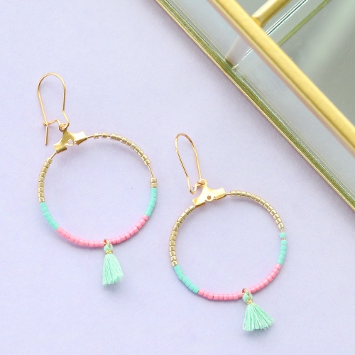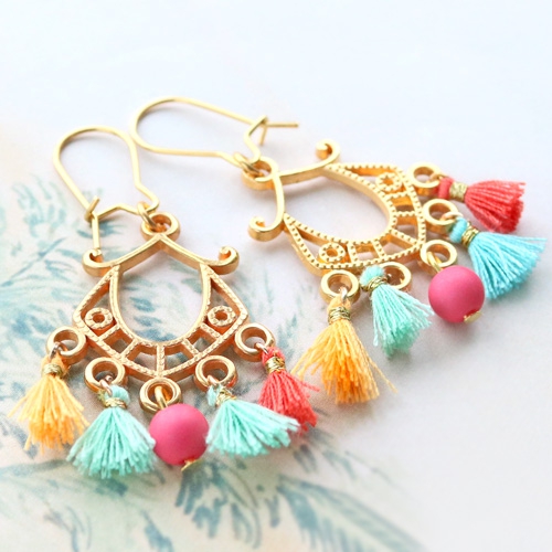 Trendy oorbellen en armbandjes met mini kwastjes, DQ metalen bedels en karabijn sloten