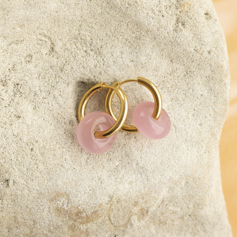 Natuursteen kralen glas rondellen 14mm Pink