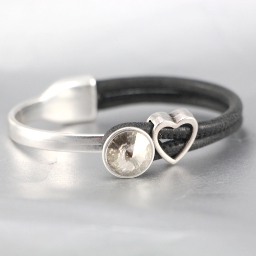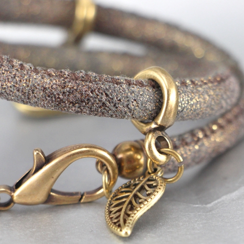 Deze prachtige armbanden zijn gemaakt met gestikt imi leer en trendy bedels en onderdelen van DQ metaal. De mooie glinsteringen in het gestikte imi leer sluiten goed aan bij de kleur van het DQ metaal. Onze basis armbanden voor 1122 rivoli puntsteen zijn erg leuk om te gebruiken met dit imi leer. Kies voor stoere kleuren en leuke schuivertjes om er een trendy armband van te maken met een glinsterende puntsteen als finishing touch. Wij hebben steeds weer trendy nieuwe bedels in onze collectie deze zijn echt fantastisch om te combineren met dit toffe leer! Gebruik de bedels van DQ metaal samen met een buigring en bevestig deze aan de ring met oog welke om het leer past. Deze look is echt hot!