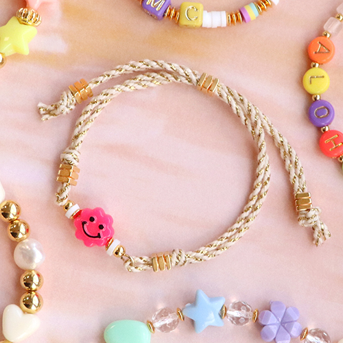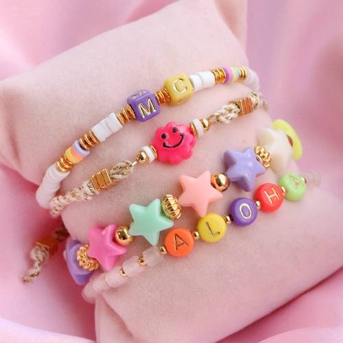 Voor het ontwerpen van armbanden, kun je gebruik maken van macramé draad of elastiek rijgdraad. Combineer de acryl kralen met bijvoorbeeld DQ metalen kralen, zoetwaterparels, natuursteen kralen tube of Katsuki kralen en ga aan de slag! Ook voor een trendy telefoonkoord gebruik je macramé draad. Wissel de acryl kralen af met DQ metalen kralen en bijvoorbeeld transparante facetkralen.