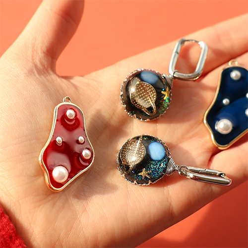 Deze nieuwe collectie statement hangers is dé perfecte manier om een unieke touch aan je sieraden te geven. Met hun gouden brass randje en een mix van glaskralen, kunsthars en speelse vormen zoals rondjes, hartjes en ovale bedels, kun je eindeloos variëren. Kies uit klassieke kleuren zoals taupe en rood, of ga voor opvallend met oranje, blauw en glitter multicolour!