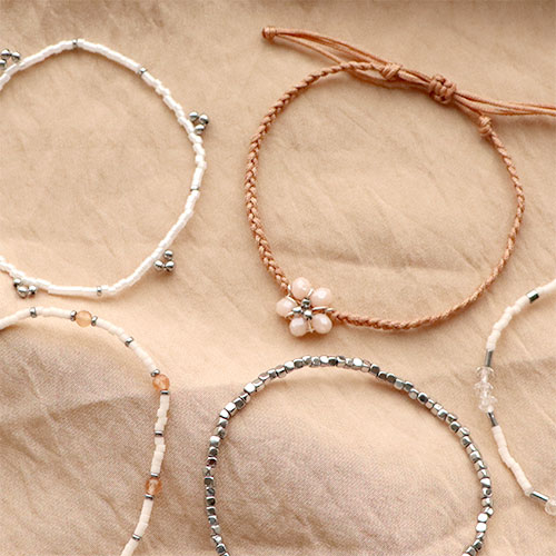 Hou jij er ook van om met kleine kralen een elegante armbanden collectie samen te stellen? Deze hematite kralen zijn heel mooi te combineren met andere natuurlijke kralen zoals bijvoorbeeld natuursteen disc, cat’s eye of facet geslepen kralen. Gebruik elastiek draad en sieraden lijm om smalle armbanden te maken. Je kunt van de hematite kralen ook kleine hangers maken met behulp van nietstiften en deze combineren met macramé draad voor een verrassend effect.