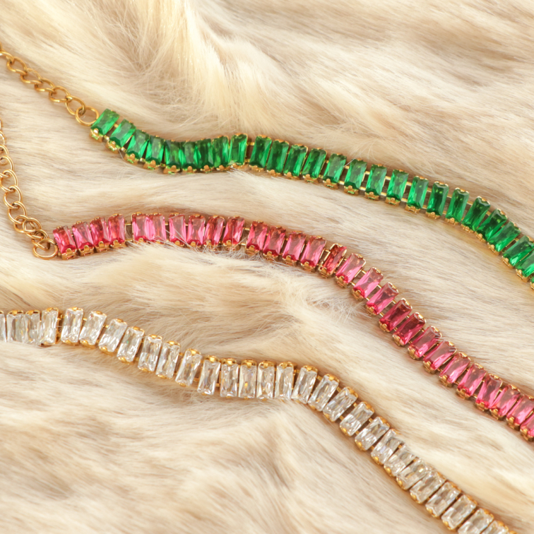 De diverse armbanden en kettingen uit deze serie zijn prachtig onderling te combineren. Presenteer deze kant-en-klare sieraden per kleur of kies diverse matching kleuren die samen gedragen kunnen worden. Maak gebruik van velvet kussentjes zodat de sieraden nog beter tot hun recht komen!