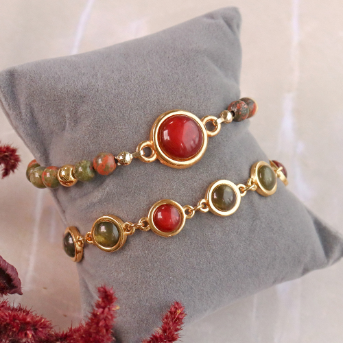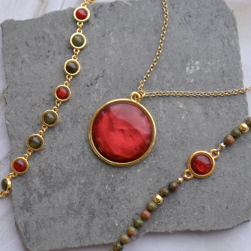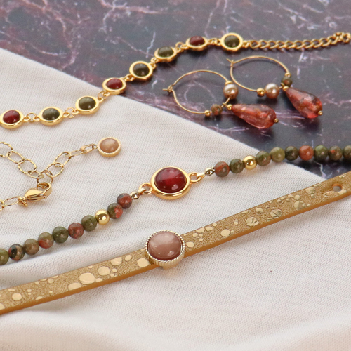 Voordat je een cabochon in een setting plakt, moet je eerst weten wat je met de cabochon wilt maken. Kies vervolgens voor een hanger of tussenstuk. Maak met tussenstukken bijvoorbeeld een armband met allemaal cabochons of combineer 1 cabochon met natuursteen kralen die je aan macramé draad rijgt. De cabochons staan ook prachtig in combinatie met de leren Cuoio armbanden uit de collectie. Maak van de kralen mooie bedels die je in een ketting aan een tussenstuk hangt als extra versiering.