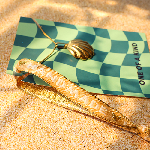 BY31® Lint met tekst "Handmade" Beige brown-white-gold