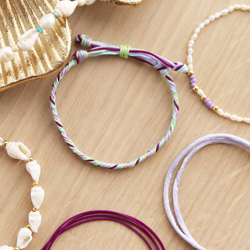Dat je met macramé draad, zoetwaterparels en schelpkralen leuke combinaties kunt maken is geen geheim. Maar hoe ga je aan de slag? Maak bijvoorbeeld met verschillende kleuren macramé draad heel eenvoudig een leuk armbandje door deze te knopen of te vlechten. Sluit af met een schuifknoop en klaar is jouw zomerse armbandje! Wil je iets extra’s toevoegen? Rijg dan rocailles of zoetwaterparels over het macramé draad en zet het middenstuk vast door een knoopje naast de laatste kraal te leggen of knijp een knijpkraal plat. Zo blijft alles netjes op ze plek zitten. Met zoetwaterparels en schelpkralen kun je ook heel leuk een zonnebril koord maken. Rijg de parels en kralen in combinatie met rocailles en DQ metalen kralen over metaaldraad en sluit af aan beide kanten met een bril koord eindje.